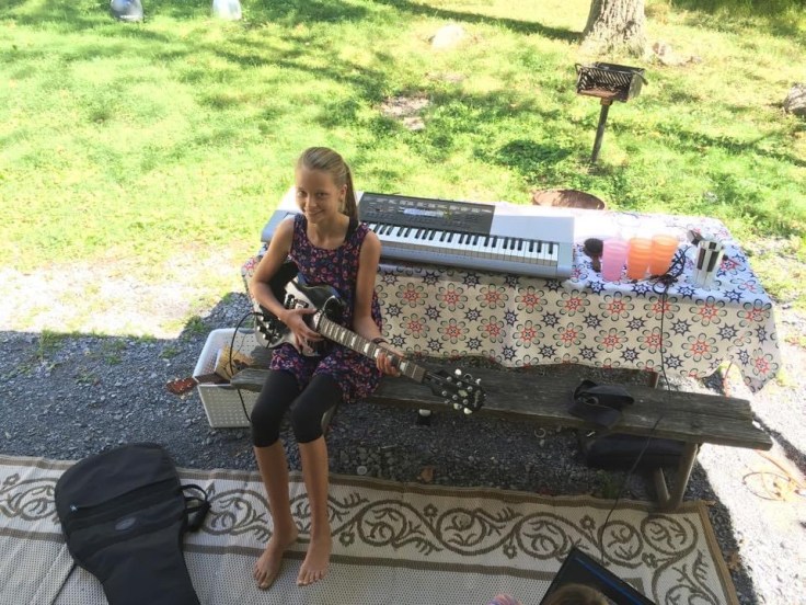 We’ve had such a busy picnic table today! Between the dog guarding schoolwork, lemonade central, our mobile music studio, Chris doing AC modifications, and the birth of a novel (handwritten in a notebook!)… It’s been a good day. #thePossibilitarians