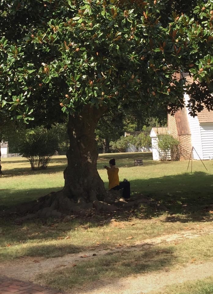 This girl and her camera below the magnificent tree; still at George Washington’s birthplace.