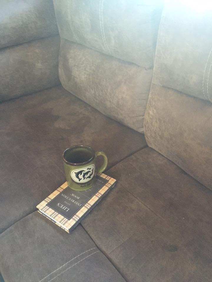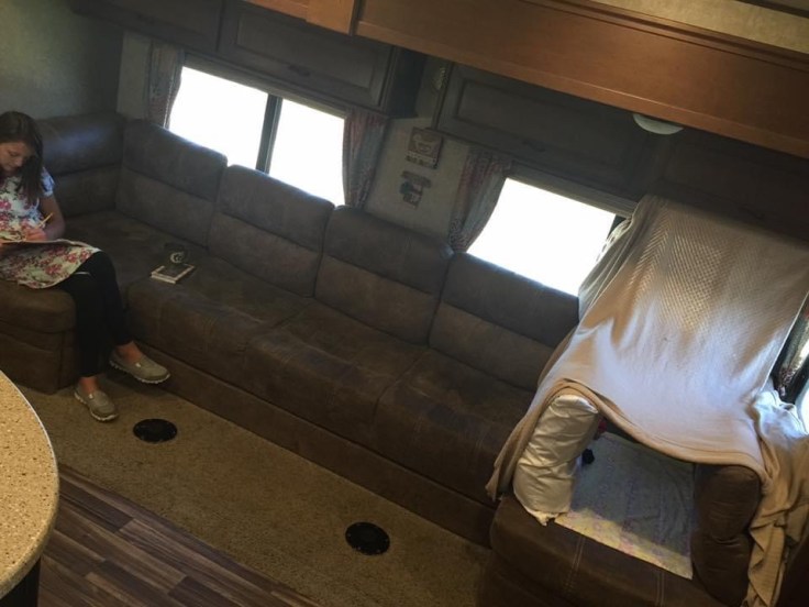 Our kitchen used to be the center of our home; now our couch is! Yesterday it kept many kids out of the cold; today it’s my coffee corner, Ruby’s fun fort, and Angel’s school area!