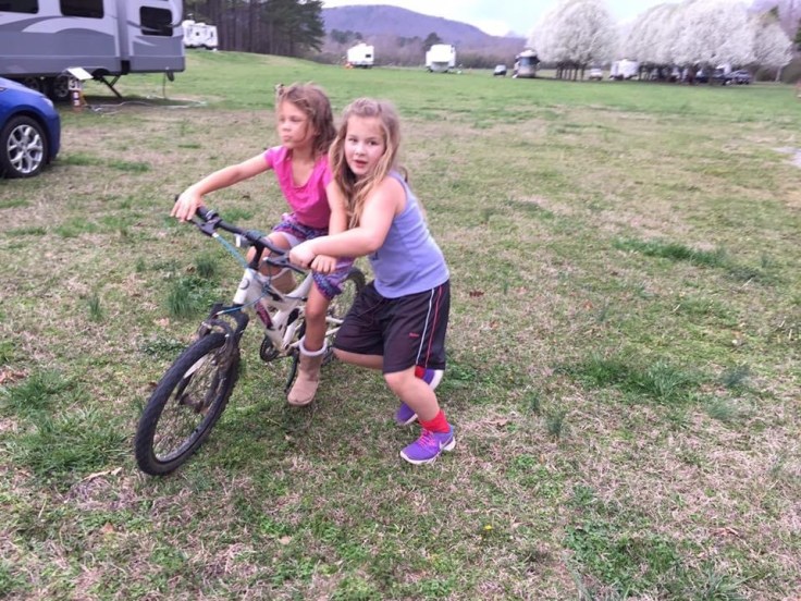 This sweet neighbor girl was teaching Ruby how to ride a bike! She said “I can teach you to ride a bike and you can teach me how to be a girl!”