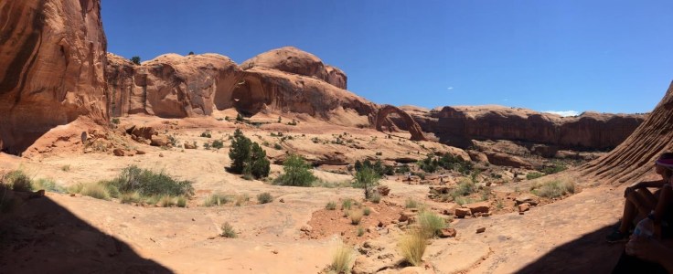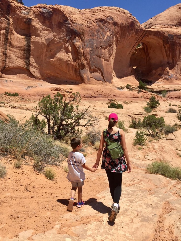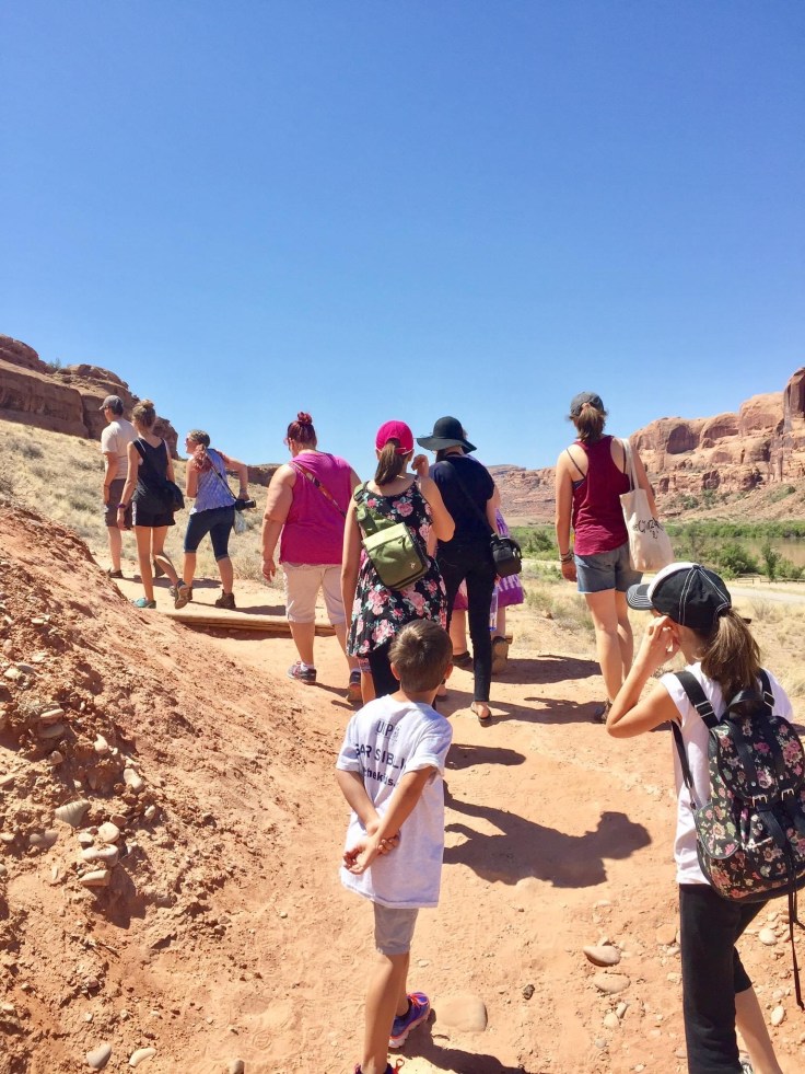 Today, I had us all to hike to Corona Arch. It was a short 1.5-ish mile hike (each way) that was all uphill getting there. The guide says there was 560′ of elevation change. For a bunch of non-hikers, us and the Jacobs did awesome! The hike was awesome and views were absolutely amazing. It reminds me of every last part/reason why we loved Moab so much.