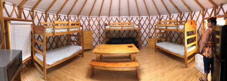 Cheryl, Lisa and Pat stayed in this cool (or not so cool temperature) Yurt on our campground!!