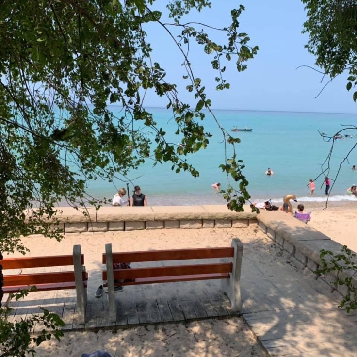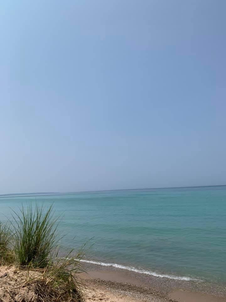 Lake Michigan from a small dune; the haze doesn’t diminish the water color…