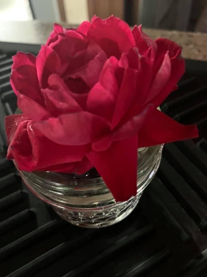 Someone left a ROSE on our picnic table for us this morning!! Was it you??! Thank you!!! 💗
