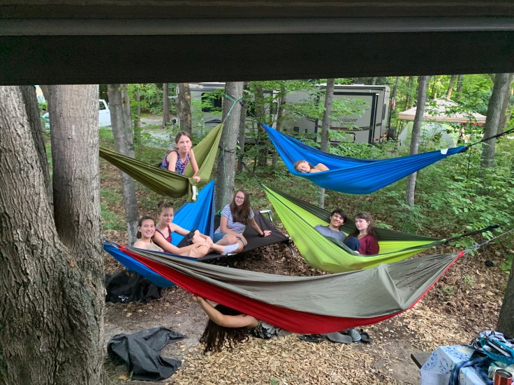 August: Daisy comes to MI, M22, more Sleeping Bear NP, Light of Day tea flight, The Gonzales family comes to Indigo and SBNP, tree climbing, hammock village, beaches, curling!, rock shops, and campfires, St Ingnace with Gonzales, Ojibwa culture, zip lining, Rick climbing, water wheel, KitchitiKipi Big Springs, Denkinsville, Camp Seven, the best campfire sing along ever!, tipi village 2.0, Krissy visits, sad farewells, tire troubles, Kansas City and family, Garrozzos and chicken spedini, unload trailer weight, date nights!