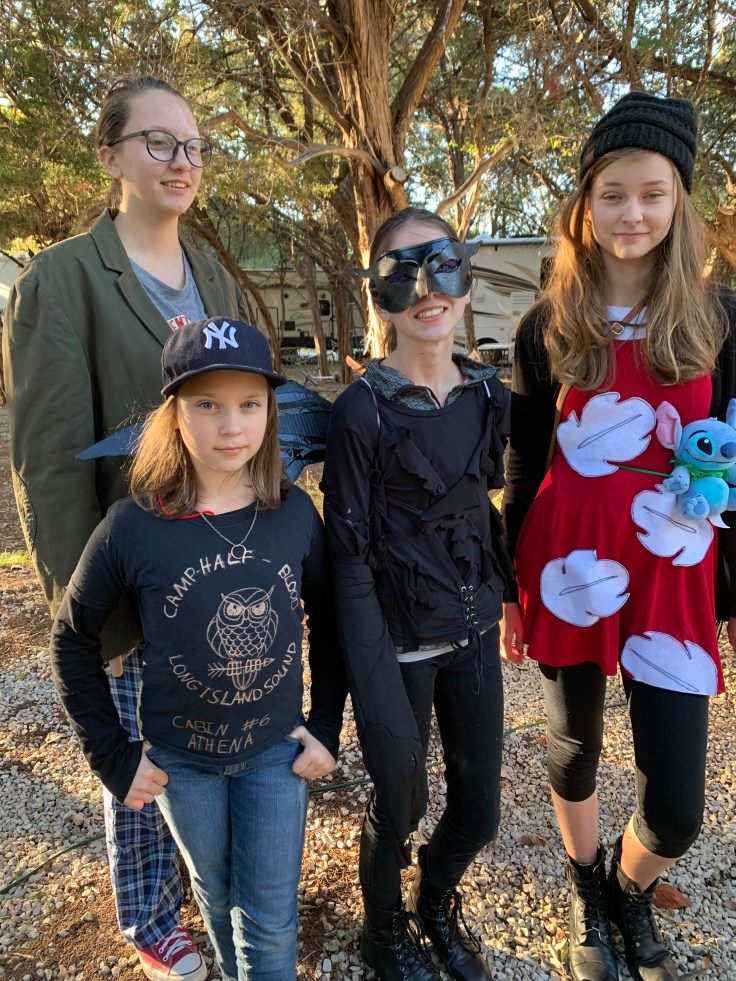 October: Petroglyph National Monument with Setzers, Albuquerque Balloon Fiesta, Auntie Cheryl visited, Hot Air Balloons at our door, fireworks, sky jumpers, gas balloons, special shapes, Roswell, NM with Bialkos, Boondocking with Carlsbad Crew (Dirksen, Bialkos and McDermmots) Bottomless Lakes State Park, San Antonio, TX, Fulltime Families Rally, halloween with ALL of the friends, The Alamo with the Setzers,