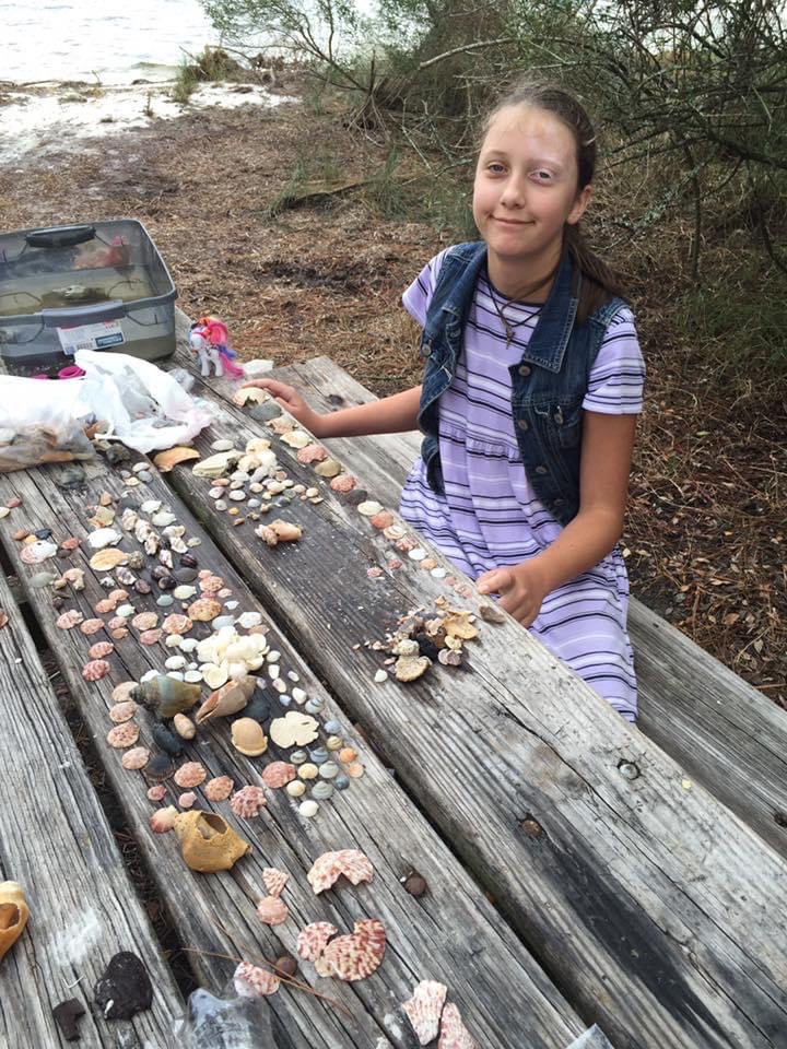 Angel the hunter/gatherer! This is the site that we could feed the small deer and the tide came up and took the girls flip flops!! The next day… one came back; we found it high in a bush!!! St Andrews State Park, Panama City Beach, FL